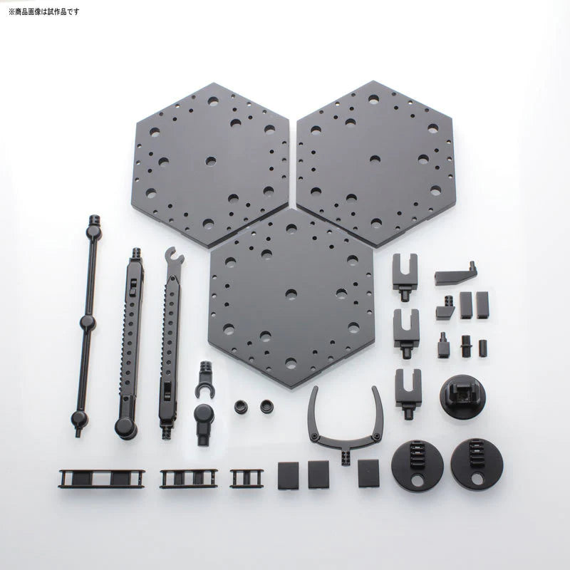 Assemble your own display stand for your Gundams and other mecha model kits! This new base from Bandai features three bases (each 2.3cm by 2cm) that can all interlock to form one base, each with lots of openings for support poles. A long support pole 11cm in length is included, as are joint parts and other support parts. Perfect for larger kits like Master Grades and RE/100! This version is black in color. Order today and put your Gundams on display!