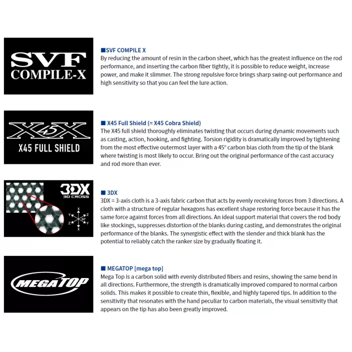 A competition rod for winning fishing that stimulates your senses. S68ML-SV・ST(KINGBOLT): Combining the unique sensitivity and operability of SVF Compile X, it has been reborn with even higher sensitivity and delicate operation feel to face tough fields. Rod, that's a King Bolt. This product, which is the 4th generation counting from Butler, uses a special blank structure that incorporates ML Power's hard solid tip into the SVF Compile X tubular blank. The SVF Compile By making the SVF Compile It brings out unprecedented hand sensitivity that can be felt.
