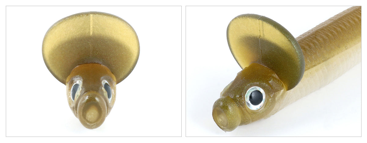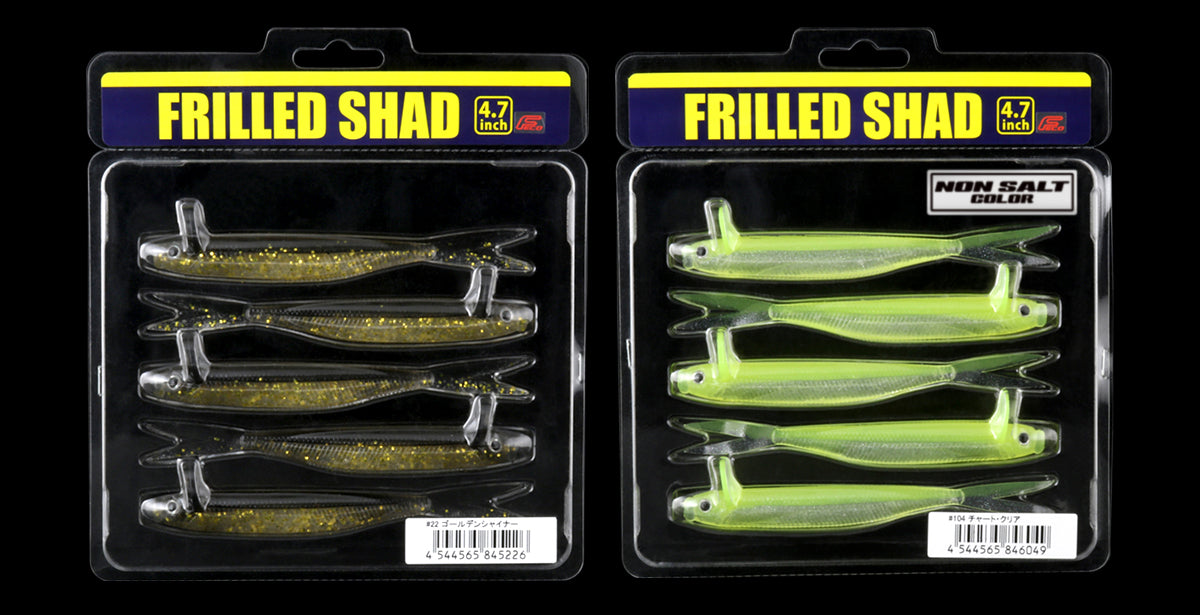 Poured with a low-density soft plastic material, the clear colors and back of the Deps Frilled Shad are made with 0% salt content while the ventral or belly side contains only 10% salt content. The fan-shaped lip above the head acts as a brake to slow its movement through the water and allow anglers to use a steady retrieve to spontaneously generate the trembling side-to-side rolling action. Perfect when rigged weightless or paired with a lightly weighted jig head, the Deps Frilled Shad remains high in the water column to make it exceptionally effective when fishing submerged rocks, grass, or specific targets.
