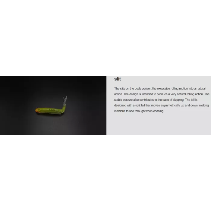 Mid-stroke and hobast have become an essential technique in the field these days. The High Roll thoroughly pursues the "roll action" that is important in this type of fishing. With conventional worms, the action varies depending on the angler, and the rig floats up, which makes this fishing difficult. The High Roll was born to overcome these issues. It is a worm with a specialized roll action that takes mid-stroke and hobast to the next level, more intense and easier.