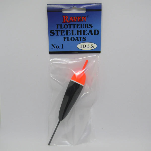 The RAVEN® float system was specifically developed for river Steelhead and Salmon fishing. A RAVEN® float is now available for virtually any river condition and depth. Sporting a high-visibility Fluorescent Red tip and a subtle matte black body, these balsa floats feature a high-strength, one-piece fibreglass stem. Every fixed-stem float is designed to take 3/32″ RAVEN® Silicone Tubing or Fluorescent Orange RAVEN® Tip Top Tubing on the top and 1/16″ RAVEN® Silicone Tubing on the stem, to allow anglers to change float size or model quickly as river conditions vary, without having to cut and re-tie.