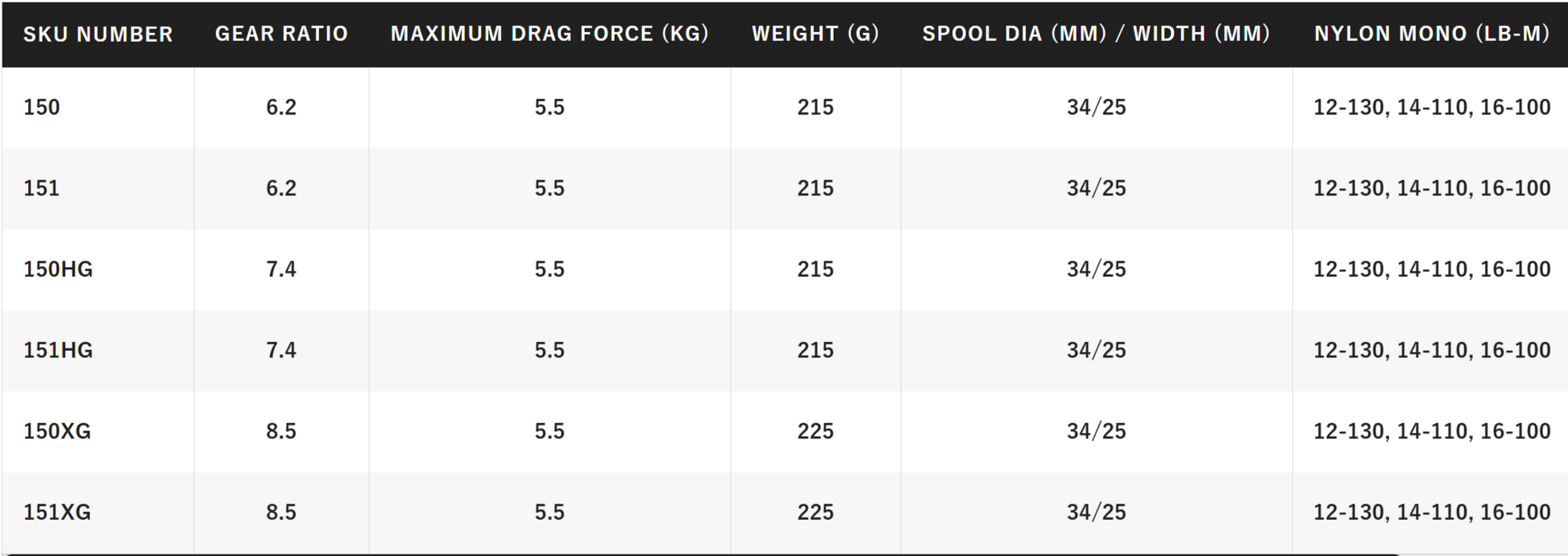 All New Shimano Scorpion DC is versatile, tough bait casting reel with advanced DC system to cast easy. It has sturdy aluminum alloy frame to be used in rough environments. New I-DC5 digital brake system is preventing backlash quite effectively with the least setting change. You choose one from three line materials, F, N and P for fluorocarbon, nylon and PE braid respectively inside palming cup, and then you choose strength at dial exposed at the bottom of the reel. The dial has 1-4 and W for brake strength. W is for windy condition to apply the max brake to cast against strong wind. Then DC system does everything for you, and you don't have to put much attention to thum. Spool size 34mm dia x 25mm wide.