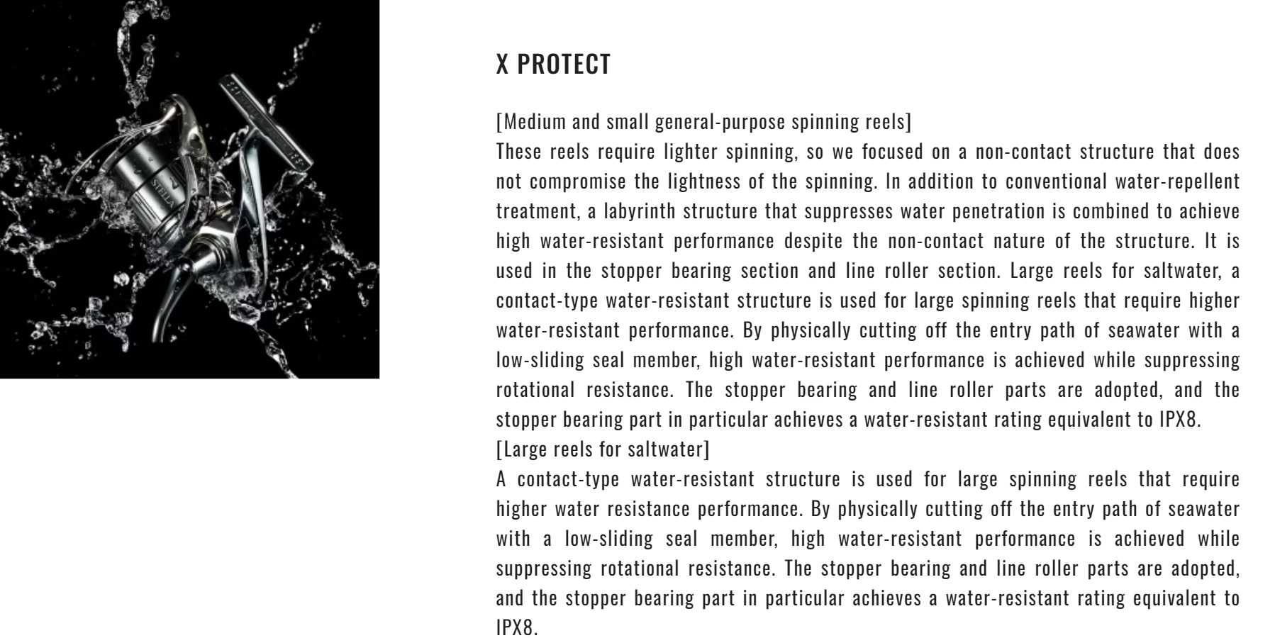 X-Protect technology prevents water getting into the moving parts of the line roller and roller clutch, extending longevity and delivering failsafe performance. For distance casting, the Long Stroke Spool design and AR-C Spool enables the line to flow more freely during the cast and the addition of a CI4+ Body reduces overall weight for less fatigue when fishing for extended periods.